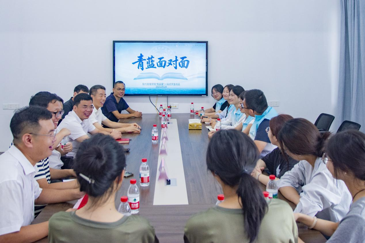 揭牌仪式后,首场“青蓝面对面”师生座谈会顺利召开。校领导与学生代表围坐一堂,围绕住宿环境、餐饮服务、教学设施及交通出行等议题展开深度交流。座谈会上,学生们高度评价新校区的校园规模、教学设施、现代化宿舍及生态化校园环境,对于软硬件配置赞不绝口。同时,大家也结合日常体验提出若干建议与问题,校领导现场逐一回应,承诺将进一步研究并落实合理建议,充分体现了“以生为本”的办学理念,为构建和谐校园奠定了坚实基础。