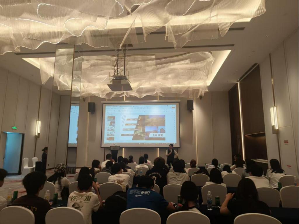 23级优秀实习生陈洋学长的朋辈分享则拉近了理论与实践的距离。他结合自身在酒店的实习经历,从岗位适应、技能提升、跨部门协作等实际问题切入,生动解读了开元集团的人才培养体系如何助力实习生成长,并针对新生关心的职业规划给出具体建议,鼓励学弟学妹们夯实专业基础、主动拥抱实践。
