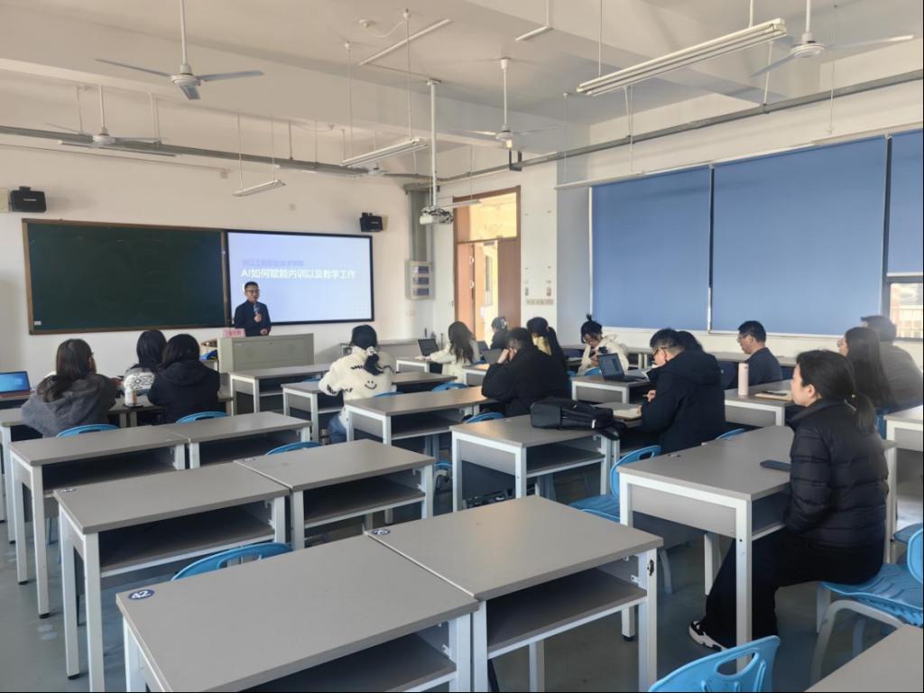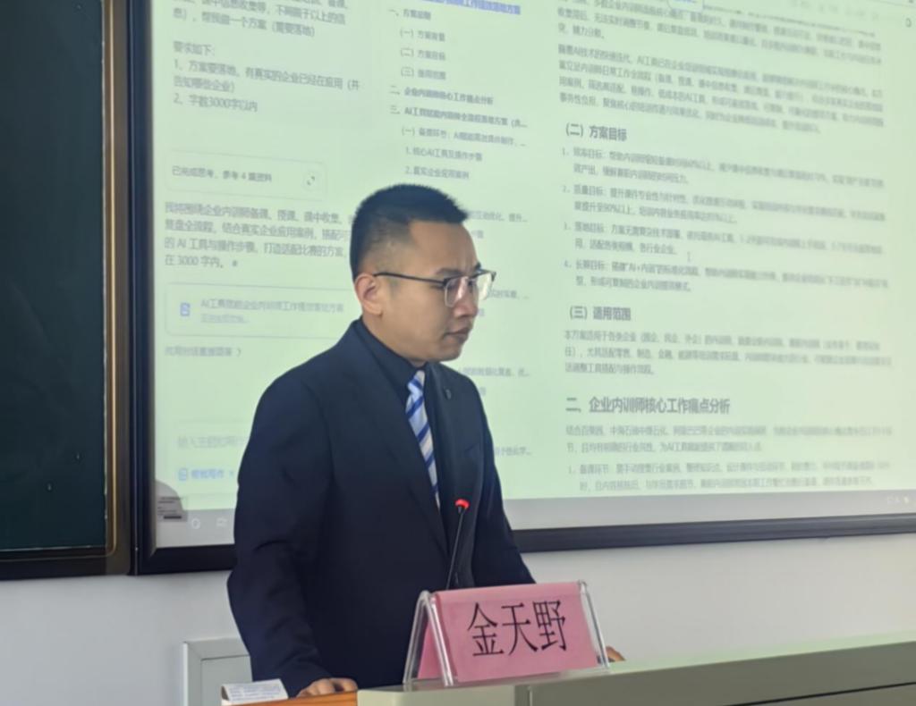 2026年3月11日,一场别开生面的“AI赋能内训及教学工作”专题培训在我校举行。AI企业智能培训师金天野老师受邀而来,为在场师生带来了一场关于人工智能与教育教学深度融合的精彩分享。