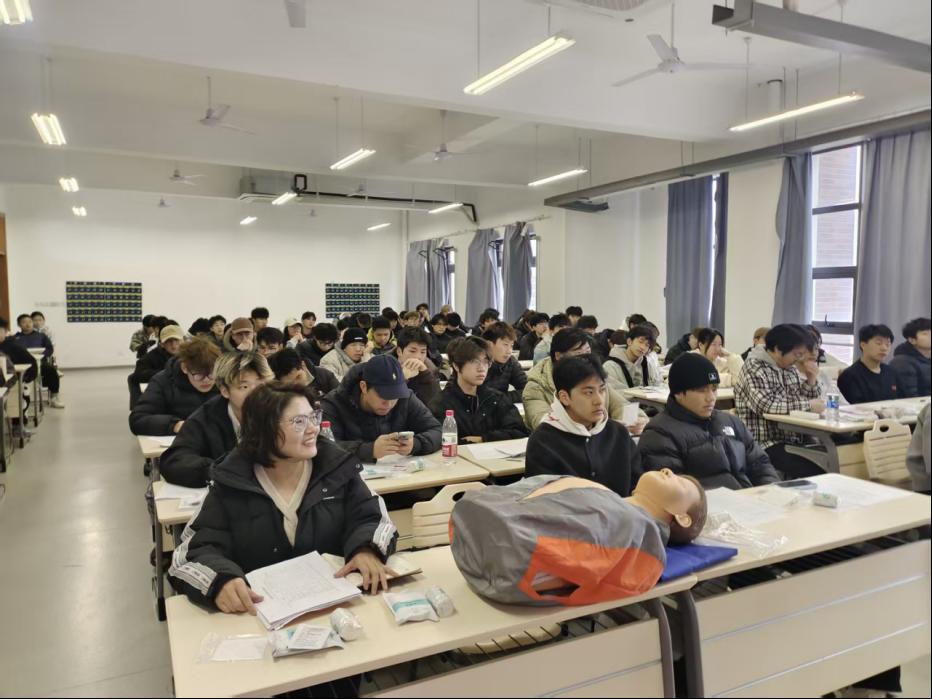 开班仪式上,现代管理学院副院长朱秀清出席并发表讲话。朱秀清强调,体育运营与管理专业的师生不仅要有专业的体育技能,更需具备守护生命的专业素养。急救技能是体育行业从业人员的必备技能,也是社会责任的体现。本次培训采取“师生同堂学急救”的模式,共有7名体育教师与103名专业学生同堂学习,充分展现了学院对安全教育的高度重视以及师生共同进步的良好风貌。