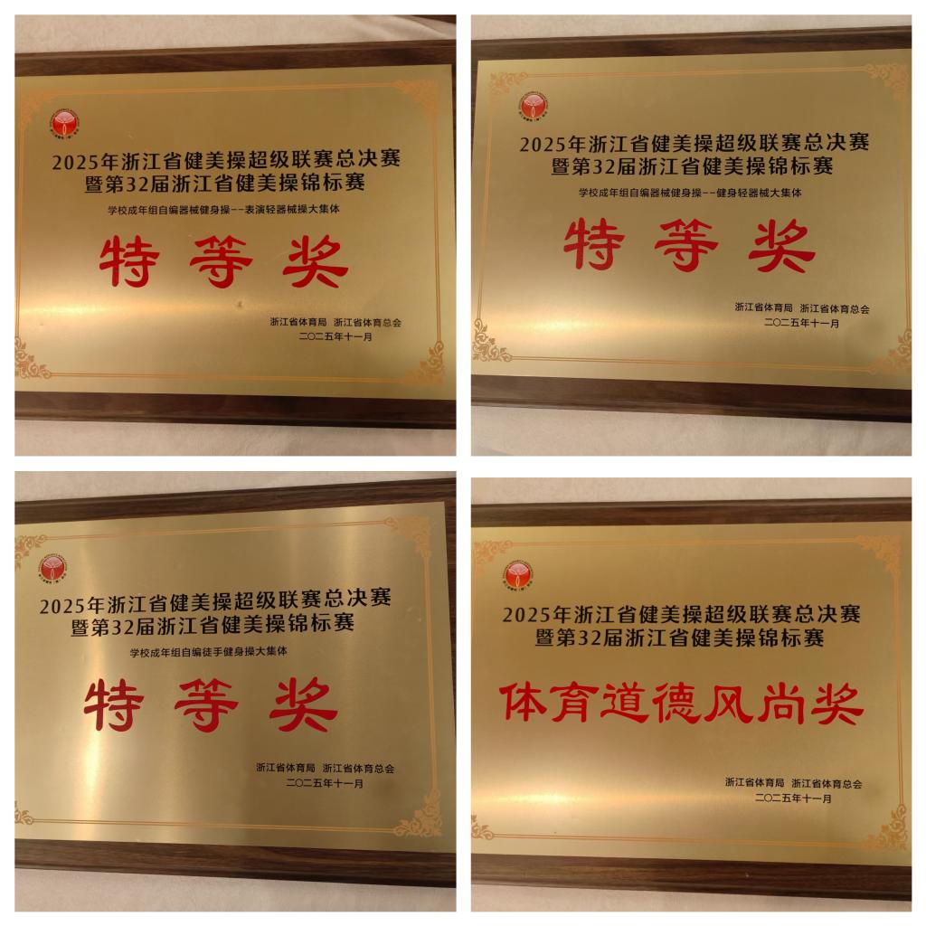 11月7日至9日,2025年浙江省健美操超级联赛总决赛暨第32届浙江省健美操锦标赛在诸暨市崇真初级中学盛大启幕,来自全省114个参赛单位的幼儿、青少年、老年群体共1874名运动员参赛。作为浙江省健美操领域的年度重磅赛事,也是浙江健美操运动发展的重要展示窗口,该赛事由浙江省体育局、浙江省体育总会主办,浙江省健美(操)协会承办。现代管理学院郭秀清老师带领的校操舞队12名学生参加了本次比赛,最终斩获3个特等奖,还赢得了体育道德风尚奖。