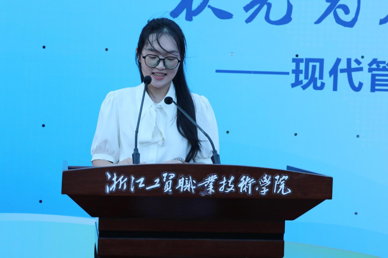 现代管理学院党总支书记、副院长邵超群以“不负青春,奋进新时代”为主题,为同学们送上新学期的寄语。他表示,随着学院整体迁入新校区,学校将充分整合资源,全面支持学生成长,为每个人的梦想护航。结合近期中国人民抗日战争暨世界反法西斯战争胜利80周年阅兵活动,邵书记强调,国威军威的背后是无数先烈的热血奉献,青年一代应铭记历史、珍惜当下,主动将个人理想融入国家发展。他提出三点希望:一要以理想为帆,锚定人生航向。青年学子都应志存高远、脚踏实地,将个人成长与国家、民族的命运紧密相连,在服务国家战略中实现人生价值;二要以创新为刃,突破能力边界。善用“四维”学习法突破自我,在人工智能不断改变我们知识学习方法的今天,勇于创新,不断拓展认知边界,在变革中抢占先机;三要以实践为笔,书写青春答卷。早立志、勇追梦,在实干中锤炼真本领,实现专业知识的扎实积累和永不停歇的自我超越。他还特别叮嘱同学们要强化安全意识,提升自我保护能力,在平安、健康、和谐的校园环境中成长成才,在瓯江口校区书写充实而灿烂的大学篇章,真正以青春之我奉献青春之中国。