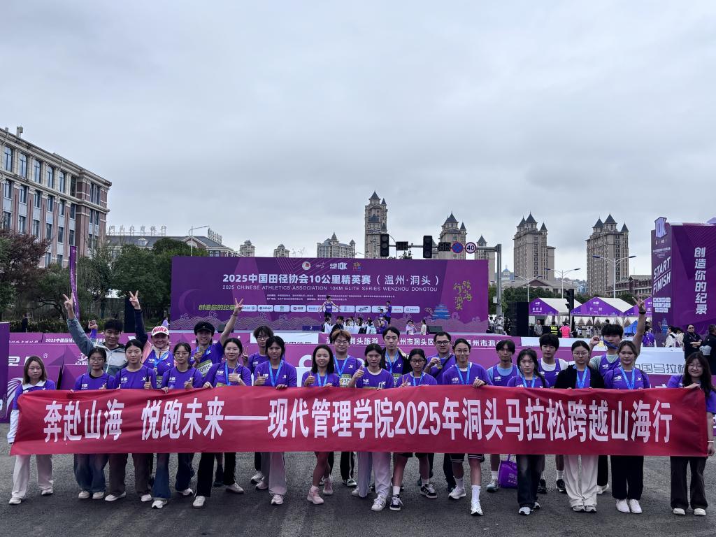 2025 年 11 月 9 日,中国田径协会10公里精英赛开跑,现代管理学院 27 名参赛选手整装待发,身着紫色运动服的他们以昂扬姿态踏上征程,将在 4 公里的欢乐赛跑道上书写属于管理学院学子的青春故事。