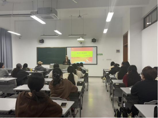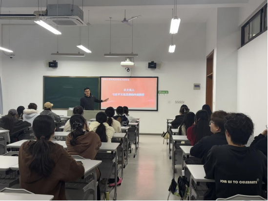 宋志超老师以“以文化人 —— 习近平文化思想的内涵探索” 为主题展开授课。他从习近平文化思想的形成背景切入,指出这一思想作为新时代党领导文化建设的理论结晶,是习近平新时代中国特色社会主义思想的文化篇。授课中,宋老师围绕坚持 “两个结合”、坚定文化自信等核心要点,结合校园文化建设、青年文化实践等案例,阐释了 “以文化人” 的时代价值。他强调,青年学子作为文化传承的生力军,要深入挖掘中华优秀传统文化的时代内涵,在日常学习生活中践行社会主义核心价值观,让文化自信融入精神血脉。生动的讲解让在场学子对文化育人的意义有了更深刻的理解。