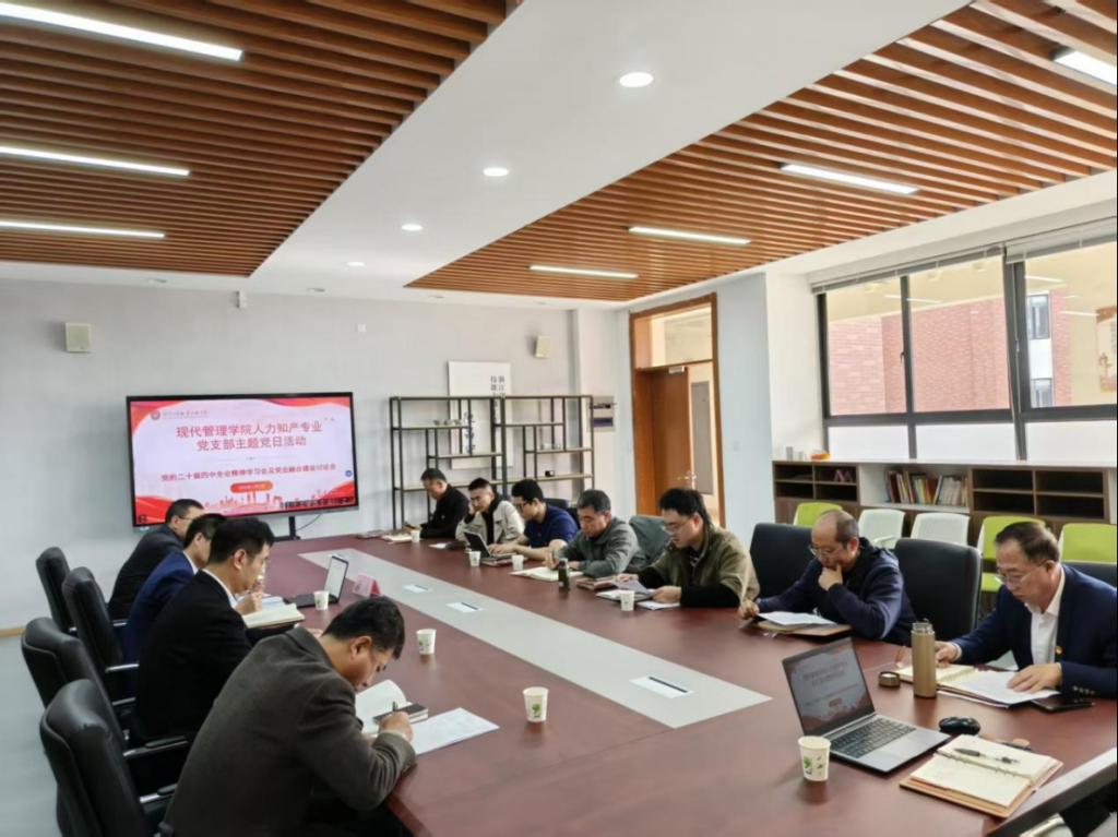 12月3日,人力知产党支部组织开展了以“深入学习贯彻党的二十届四中全会精神,深化党业融合,推动专业高质量发展”为主题的党日活动。学校党委副书记、校长余闯到会指导,组织部、现代管理学院相关负责人及支部全体党员参加会议。会议由党支部书记杨军明主持。