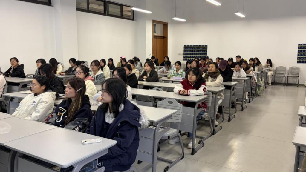 课堂伊始,邵超群书记以党的二十届四中全会精神为核心授课内容,结合全会公报原文展开系统解读。他从会议召开的时代背景、核心议题切入,清晰梳理了全会在推进国家治理体系和治理能力现代化进程中的重大意义,尤其聚焦基层党建与青年思想引领的新要求,向同学们提出明确期望:“要把全会精神融入日常学习与校园服务的每一处细节,用脚踏实地的行动响应时代号召。”