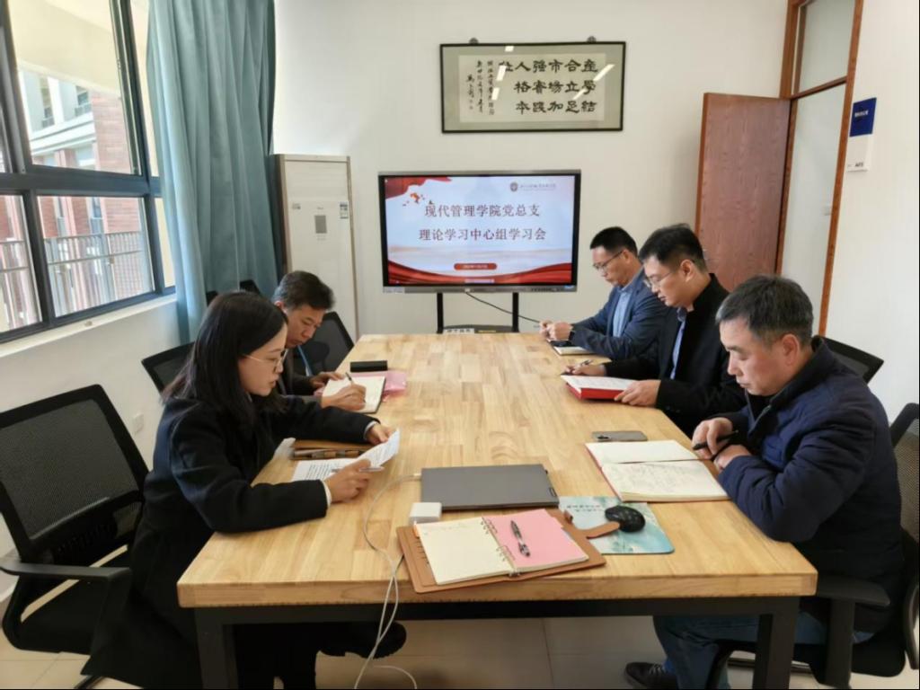 2025年11月21日下午,现代管理学院党总支在瓯江口校区现代管理学院A415会议室举行理论学习中心组学习会,学习第22期《求是》杂志习近平总书记重要文章《因地制宜发展新质生产力》、第21期《求是》杂志发表的习近平总书记重要文章《关于〈中共中央关于制定国民经济和社会发展第十五个五年规划的建议〉的说明》、习近平总书记在广东考察时重要讲话精神及浙江省委十五届八次全体会议精神等。现代管理学院党总支理论学习中心组成员、组织员参加会议,学习会由党总支书记邵超群主持。